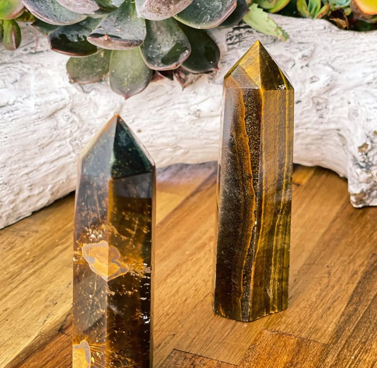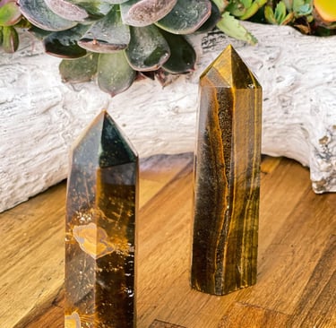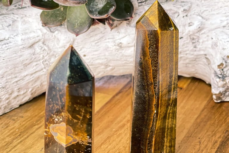 Pero para el místico, este proceso es mucho más profundo: es la transformación del dolor (el azul profundo de la crocidolita, asociado a la melancolía) en poder dorado (el óxido de hierro, asociado al Sol y la vitalidad). Es la prueba de que la presión y el calor de la existencia pueden refinar el espíritu hasta convertirlo en una herramienta de protección y manifestación.
